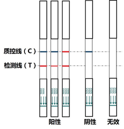 3. 質(zhì)控線(C線)顯色后10min內(nèi)觀察結(jié)果,10min后判讀無(wú)效。