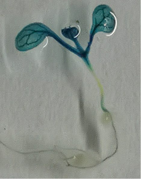 3.洗脫:將材料轉入無水乙醇或80%丙酮中脫色2-3次,至陰性對照材料為白色。GUS染色陽性的藍色斑點很穩(wěn)定,在酒精中不褪色。