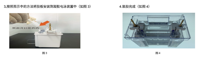 向電泳槽的內(nèi)槽中倒入足量響應(yīng)電泳緩沖液,使其覆蓋上樣孔5-7mm,在外槽中加入相同的電泳緩沖液確保冷卻。為了獲得最好的效果外槽緩沖液需要比內(nèi)槽低,不可漫過膠板。