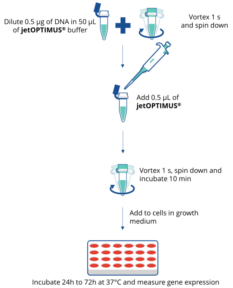 圖jetOPTIMUS的簡單性?DNA轉(zhuǎn)染方案,在24孔板中。