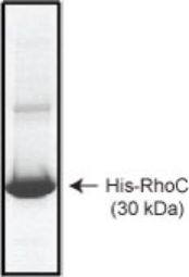 The recombinant protein is approximately 30 kDa, consisting of the RhoC protein plus a histidine tag in the amino-terminus.