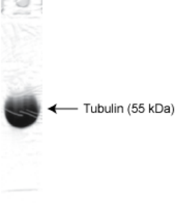 Tubulin protein has been purified from porcine brain by an adaptation of the method of Shelanski et al. (1), Further purification to >99% purity was achieved by cation exchange chromatography. Tubulin is supplied as a white lyophilized powder.