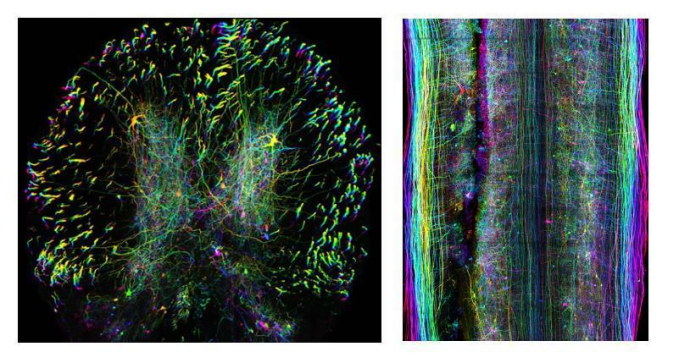 RapiClear 1.49透明處理550um小鼠脊髓切片表達(dá)YFP神經(jīng)元的深度成像顯示: