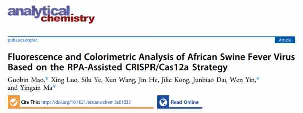 2023年5月11日,中國科學(xué)院深圳先進技術(shù)研究院合成生物學(xué)研究所馬英新課題組與湖北大學(xué)印文博士合作,在 Analytical Chemistry 期刊上發(fā)表了題為:Fluorescence and Colorimetric Analysis of African Swine Fever VirusBased on RPA-Assisted CRISPR/Cas12a Strategy 的補充封面論文。