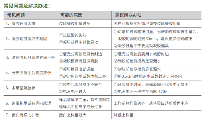 10%過硫酸銨:加10ml 雙蒸水配制為10%溶液。務必分裝成0.5ml或一天內(nèi)使用量的小管-20℃保 存,短期可暫時放4℃;通常凍存狀態(tài)下一年內(nèi)有效。 過硫酸銨粉末可以室溫長期保持,潮解會完全失 活,務必密封保存。