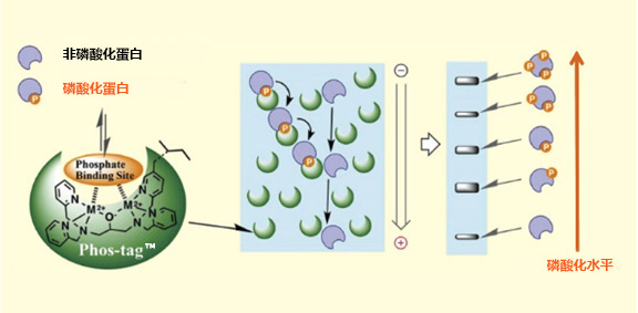 1. SDS-PAGE膠中的Phos-tag捕獲磷酸化蛋白。