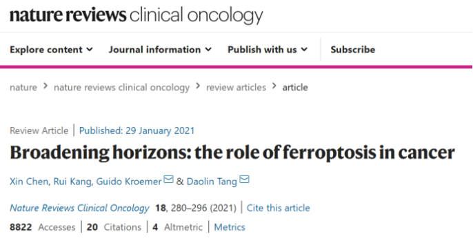 文如其名,屬實可以讓我們“大開眼界”!文章主要介紹了鐵死亡的關(guān)鍵分子機制,描述了鐵死亡與腫瘤相關(guān)信號通路之間的串?dāng)_,并討論了鐵死亡在全身治療、放射治療和免疫治療中的潛在應(yīng)用。