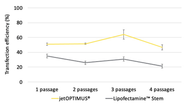 1.jetOPTIMUS?確保原代間充質(zhì)干細(xì)胞在多次傳代時具有高轉(zhuǎn)染效率