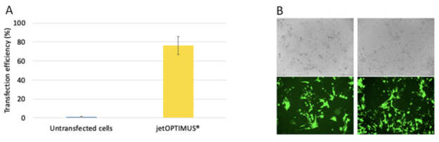 2.jetOPTIMUS?在不影響小鼠胚胎干細(xì)胞生存能力的情況下實現(xiàn)了60%以上的轉(zhuǎn)染效率