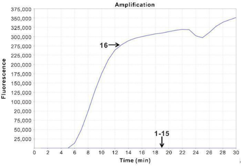 分別對結核分枝桿菌、膿腫分枝桿菌、膿腫分枝桿菌、異種分枝桿菌、偶然分枝桿菌、龜分枝桿菌、海洋分枝桿菌、恥垢分枝桿菌、豬分枝桿菌等陽性樣本進行檢測。結果只有結核分枝桿菌呈現(xiàn)陽性,見上圖曲線16。