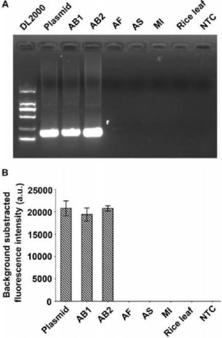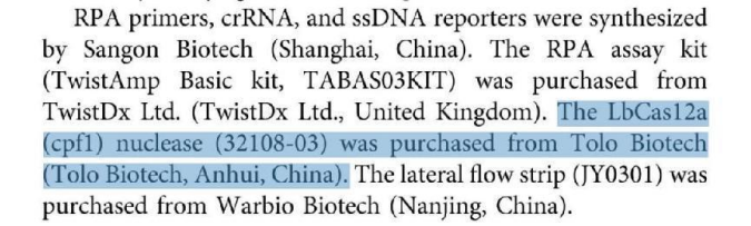 [1].Zhang A, Sun B, Zhang J, et al. CRISPR/Cas12a Coupled With Recombinase Polymerase Amplification for Sensitive and Specific Detection of Aphelenchoides besseyi[J]. Frontiers in Bioengineering and Biotechnology, 2022, 10: 912959.