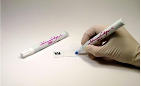 ImmEdge" Pen(VectorLabs)是PAP Pen(免疫組化筆,超級免疫組化筆)的升級產品,可用于免疫組化、免疫細胞化學、免疫熒光和原位雜交(ISH)實驗。特別設計可劃出熱穩(wěn)定和疏水的分界線,保證染液(試劑)停滯在圈內組織樣本。當同一個玻片有多個切片時可避免試劑混雜。ImmEdge"Pen劃出的疏水線在含或含去污劑(如Tween20,Tritonx-100)的緩沖液中很穩(wěn)定。