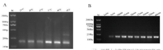 本研究根據(jù)螺原體的保守基因序列,構(gòu)建并篩選了合適的擴(kuò)增引物。設(shè)計(jì)并標(biāo)記了相關(guān)的特異性探針和所選的特異性擴(kuò)增引物。然后對(duì) MIRA 和 MIRA-LFD 反應(yīng)條件進(jìn)行了優(yōu)化。結(jié)果表明,MIRA 和 MIRA-FFD 分別能在 37℃的溫度下用 30 分鐘和 10 分鐘鑒定出螺原體。