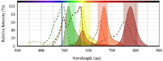 長(zhǎng)波長(zhǎng)發(fā)射曲線最大程度地減少了生物材料的自發(fā)熒光