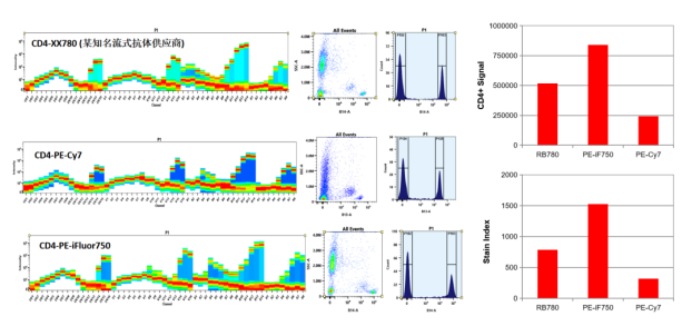 偶聯(lián)物:CD4-XX780(流式抗體供應(yīng)商A),CD4-PE-Cy7(流式抗體供應(yīng)商B),CD4-PE-iFluor750(AAT)