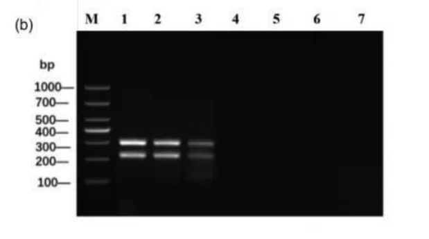 (1-6:107至102稀釋質(zhì)粒DNA;7:陰性對(duì)照)