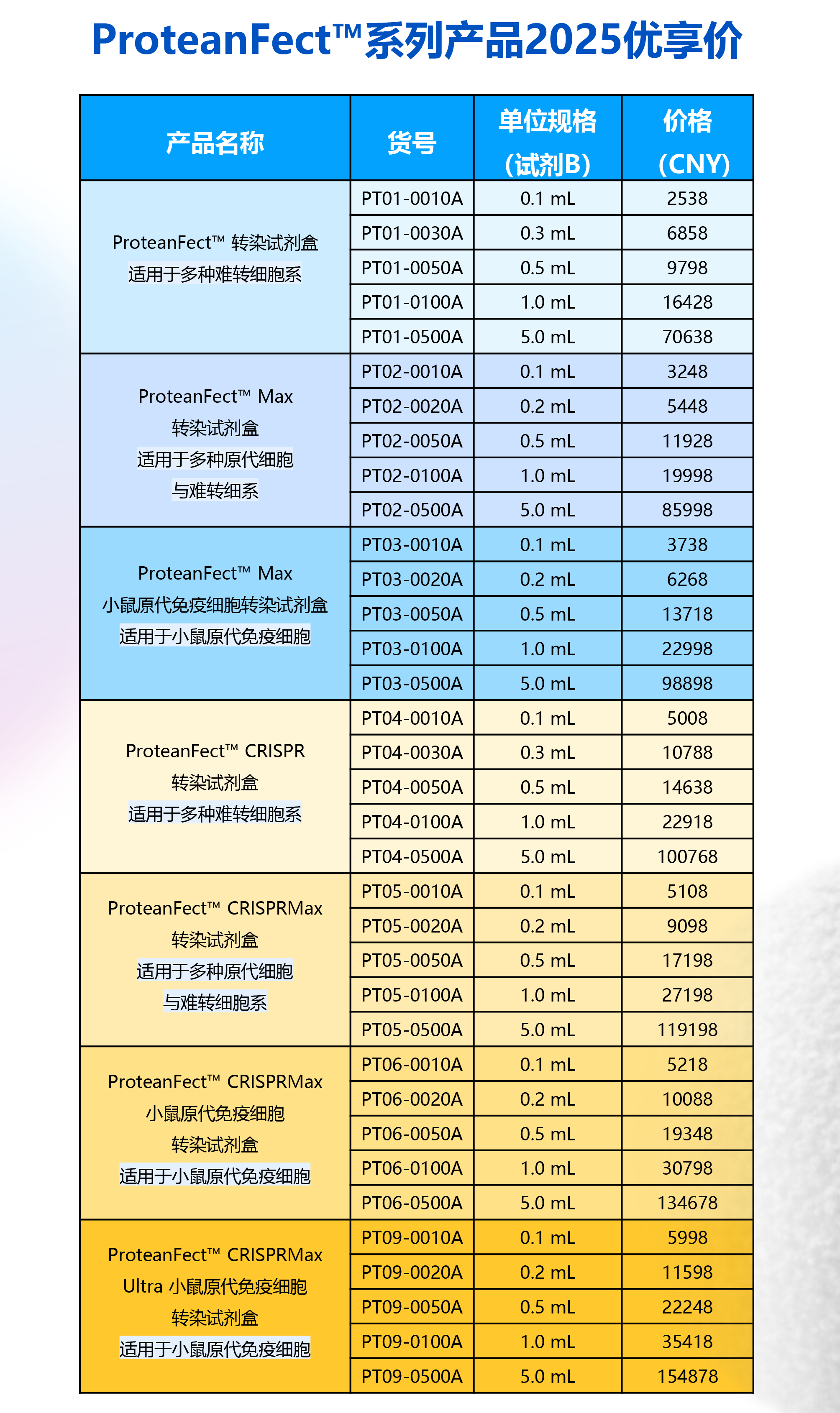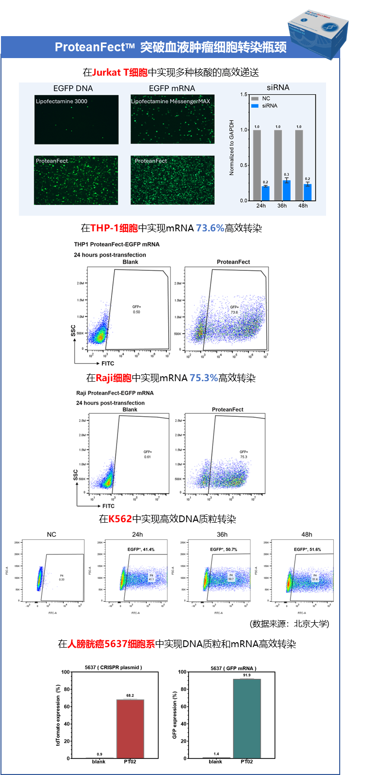 基于這些技術(shù)優(yōu)勢,我們強烈推薦使用 ProteanFect 轉(zhuǎn)染試劑盒,以實現(xiàn)更高效的基因表達。ProteanFect™ 系列轉(zhuǎn)染試劑盒現(xiàn)已全面上市,滿足各類難轉(zhuǎn)腫瘤細胞的基因遞送需求。